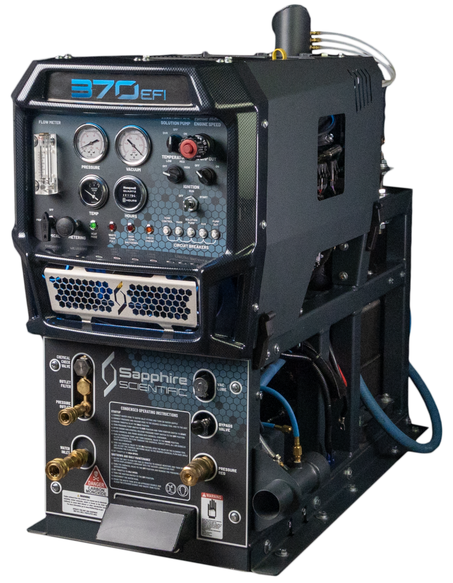 The CARB-Compliant 370 EFI truckmount upgrades the industry's best-selling Sapphire 370 truckmount with new features that make it more efficient, longer lasting and easier to use. Now available in all 50 states, this machine boasts the lowest fuel consumption of any truckmount, saving $10,000 over 5 years*.